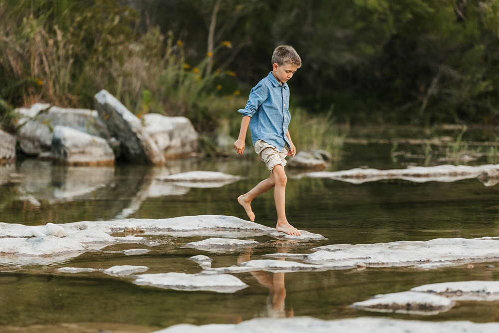 This North Austin favorite is a go-to for a reason. With shallow creek beds, limestone ledges, and lots of shade, it’s perfect for little ones who want to splash and explore. The mix of water, greenery, and golden light makes every photo look magical.
